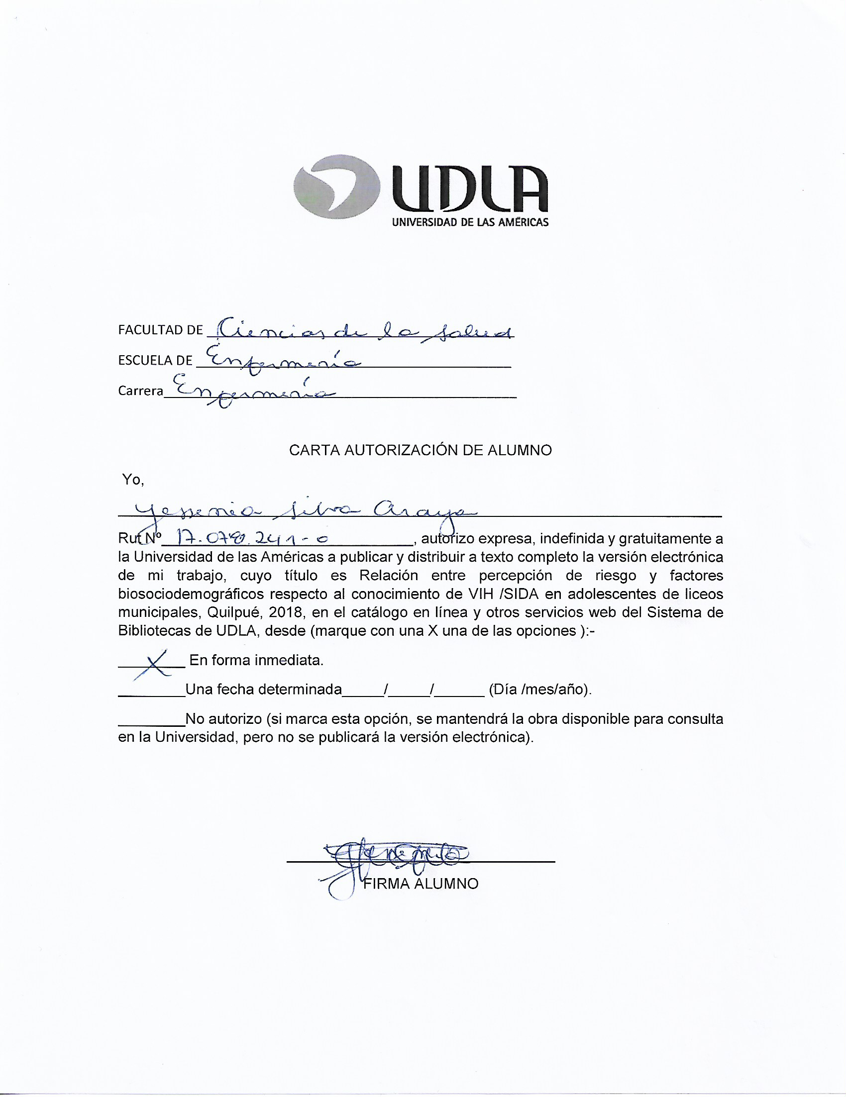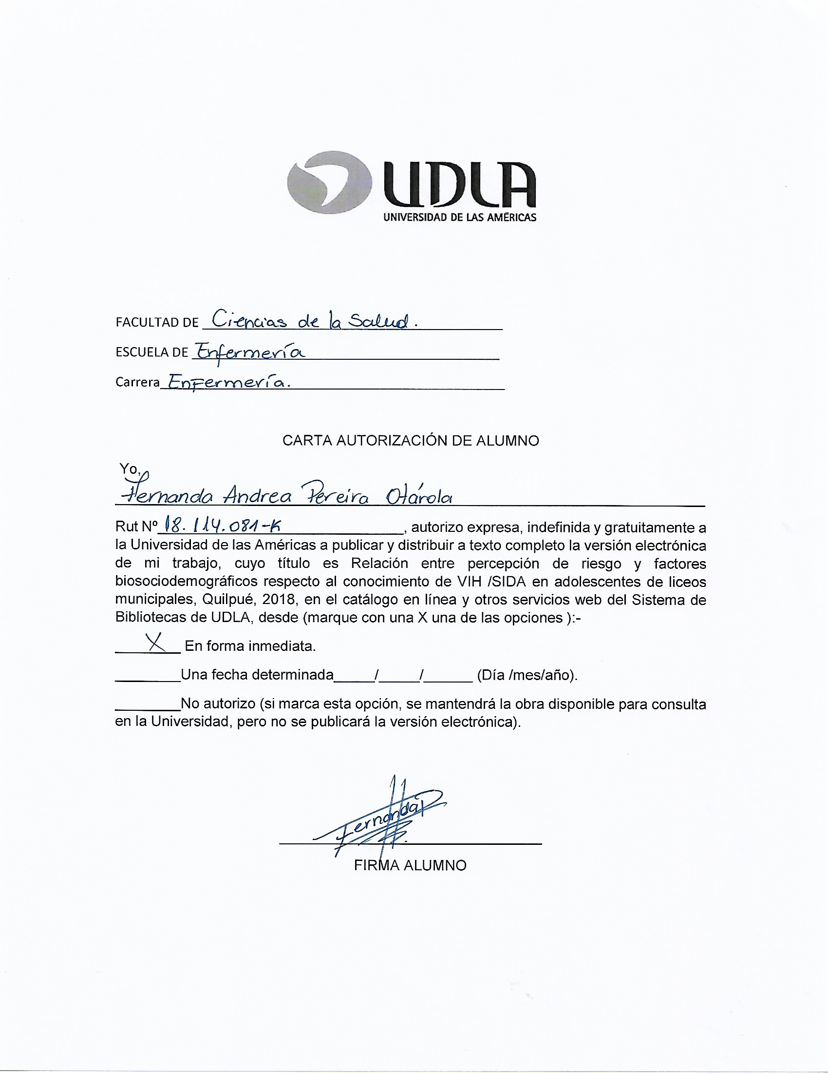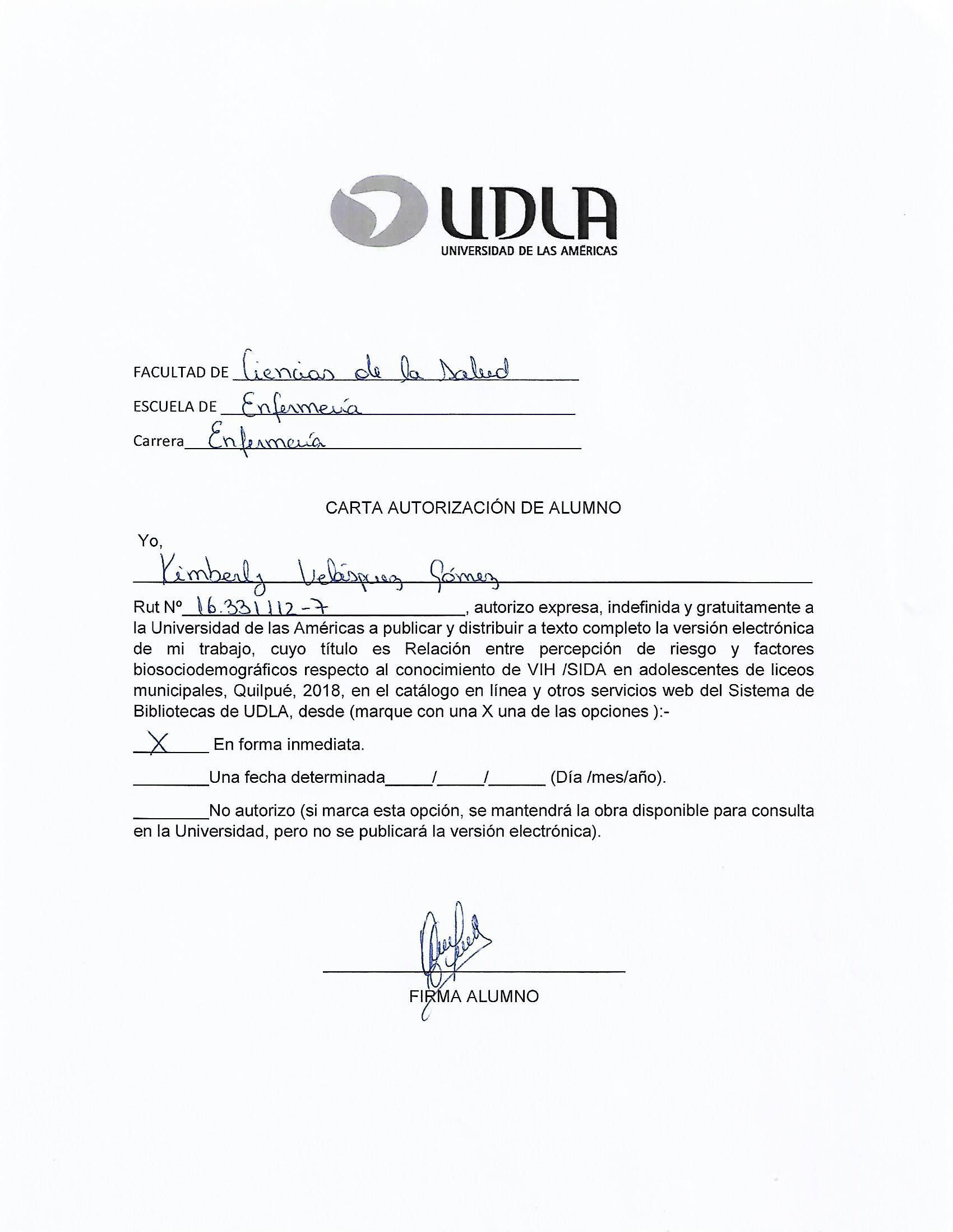 Relación entre percepción de riesgo y factores biosociodemográficos respecto al conocimiento de VIH /SIDA en adolescentes de liceos municipales, Quilpué, 2018